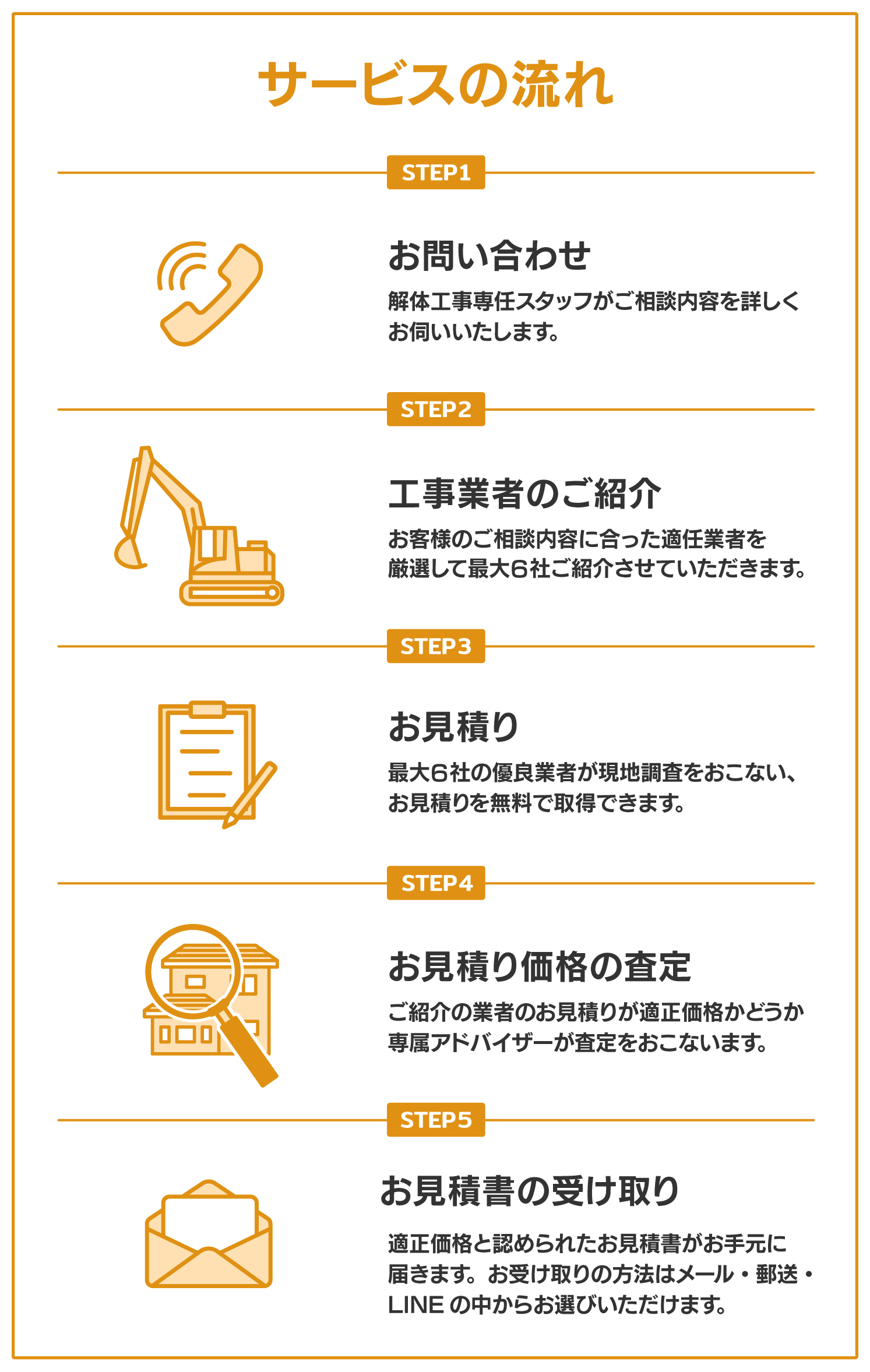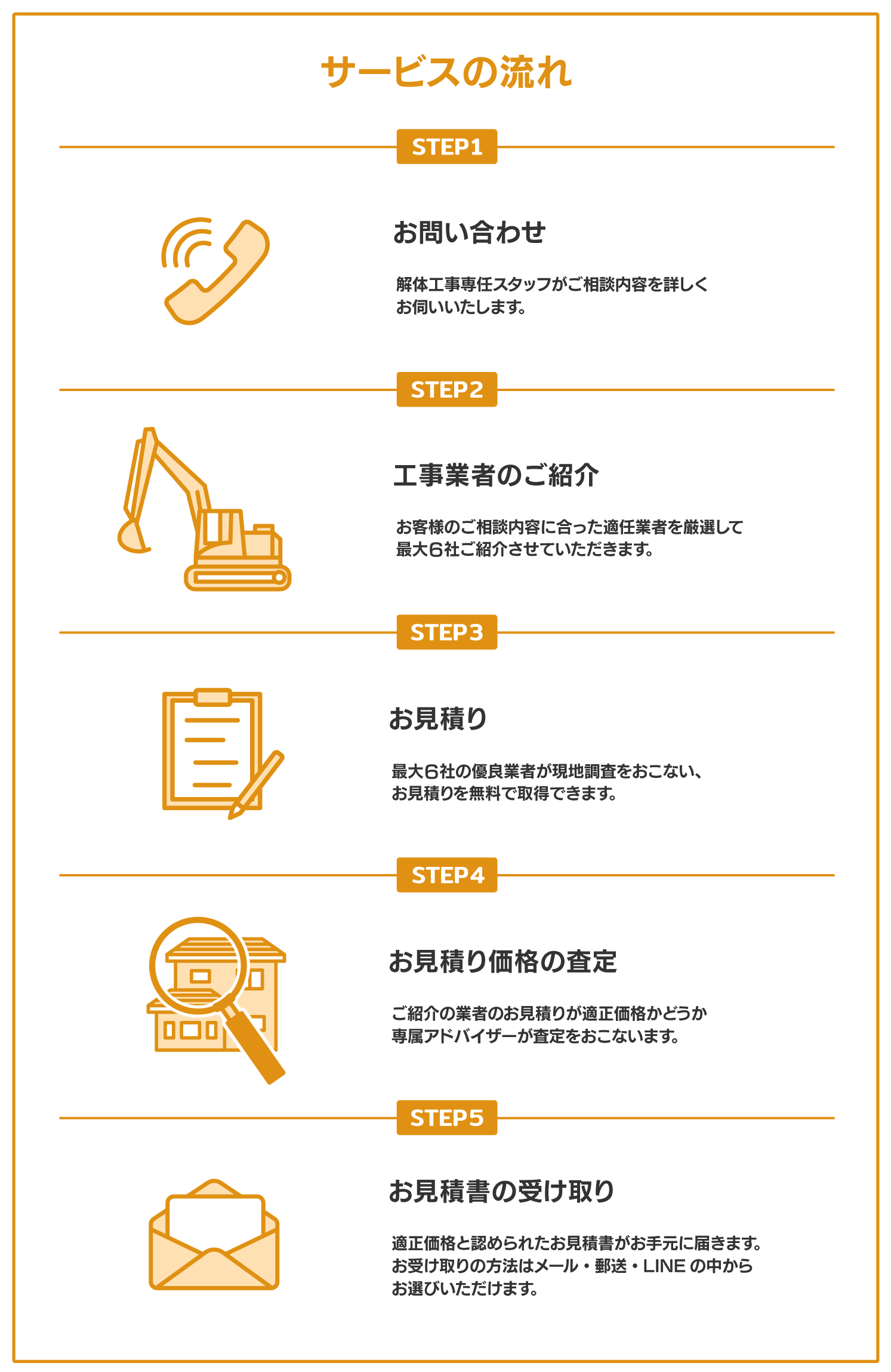 解体工事専任スタッフが、お客様の状況に合わせてご案内いたします。